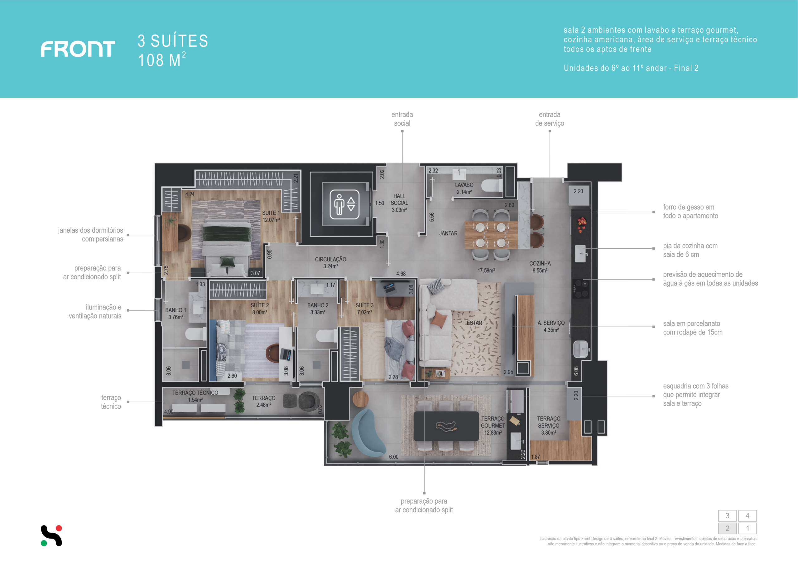 6° ao 17° andar – Final 2 – 12 unidades – 108 m²